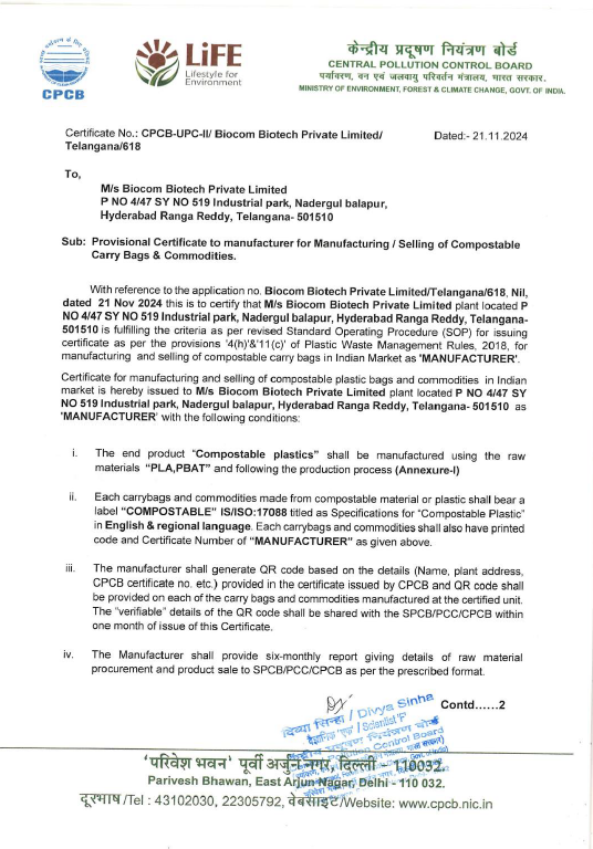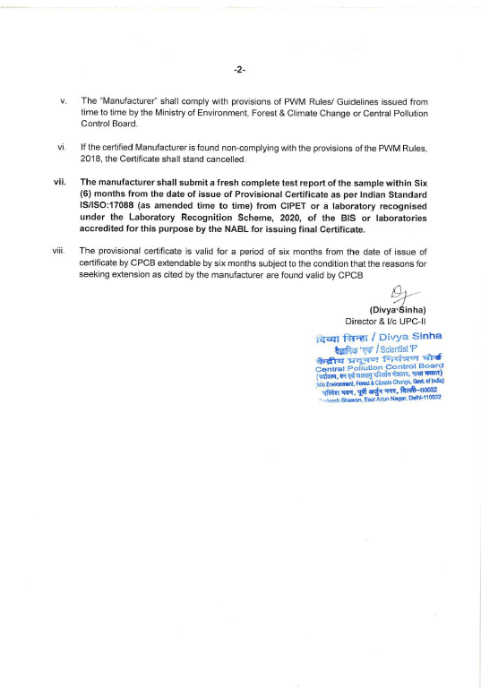 Manufacturers CPCB Certificate and UDYAM Certificate